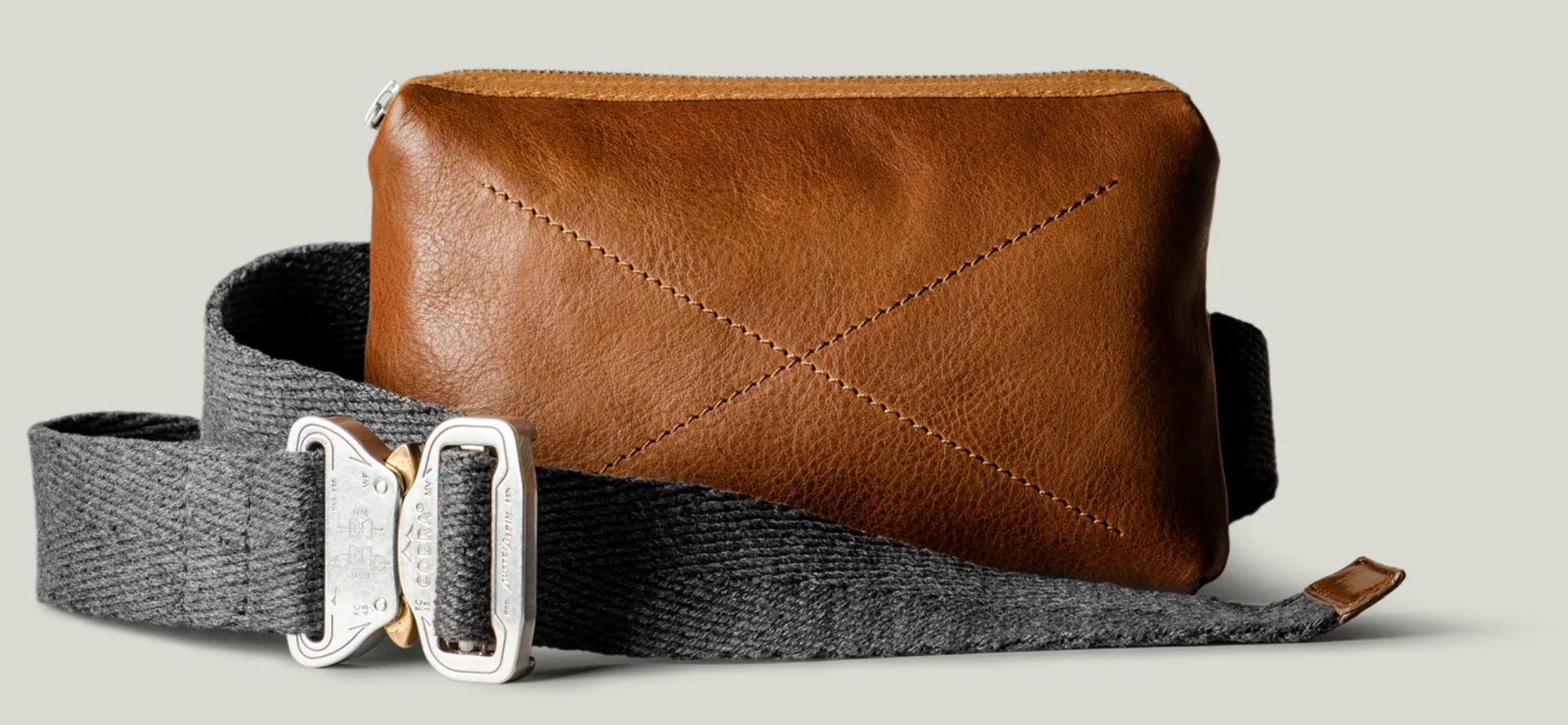Even in the crowded category of crossbody slings and sacoches, the Hardgraft stands out for its absolutely gorgeous materials: beautiful leather, Cobra buckle, grey wool, herringbone strap. At £300, you would hope it to be luscious, and it is.