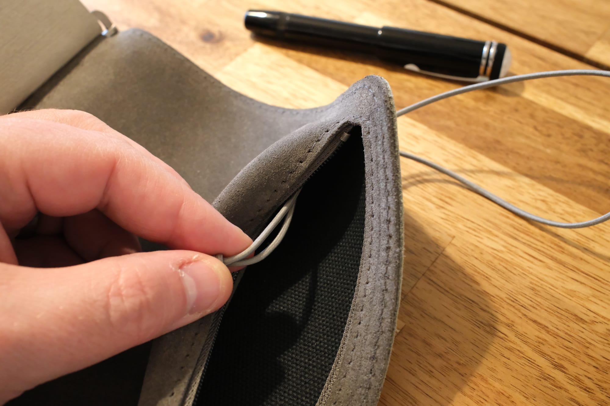 Secondly, a thicker elastic loop. This shoelace-style one tends to pinch the cover, and over time I could see it leaving a mark. Some models again have a thick loop, but not in my preferred colours.