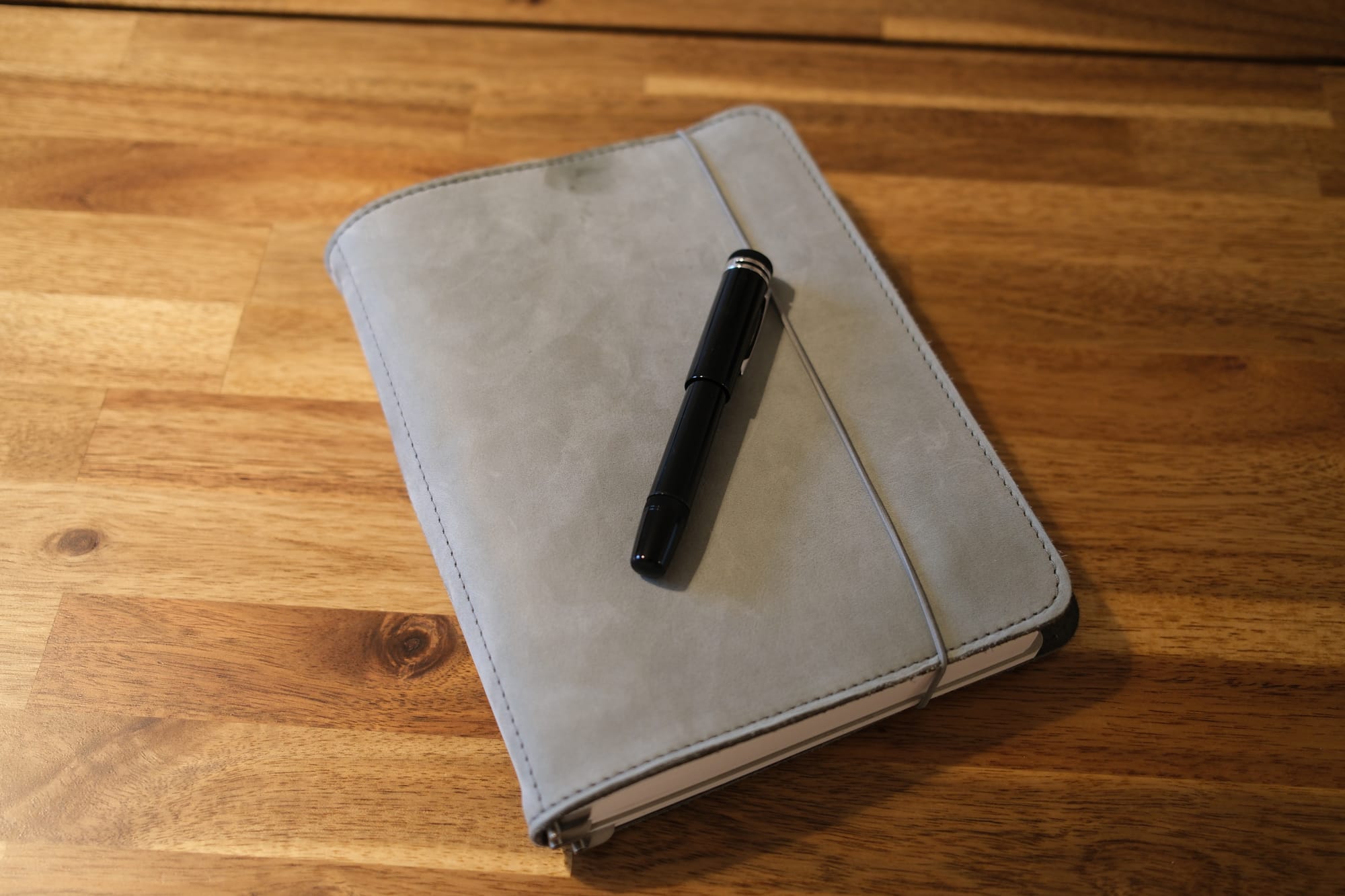 Most obviously, a proper pen sleeve that can accommodate and protect a full-size fountain pen. There are third-party products I could add, but one built into the cover would be very useful. Some RFTB models have a little pen loop, but not the one I chose.