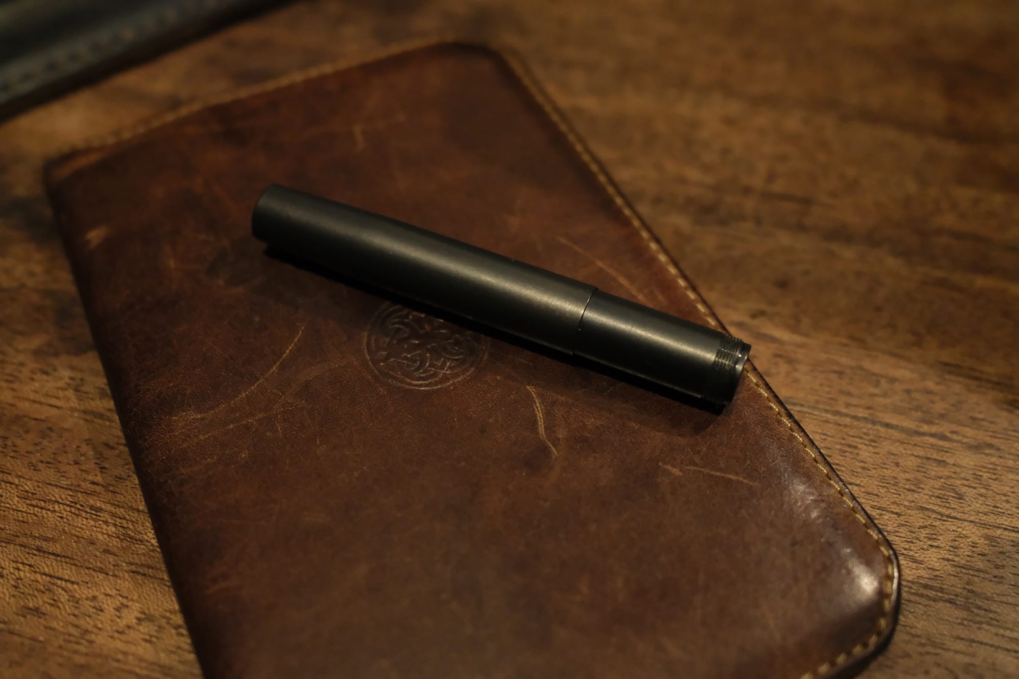 I don’t need a pocket fountain pen a lot of the time, and I don’t use one every day. But when I carry one, this is the one I carry. I don’t see that changing any time soon. And so here I am, in my local pub on a dark rainy night, with a battered leather notebook cover, and my trusty Gravitas Quark. Perfect.