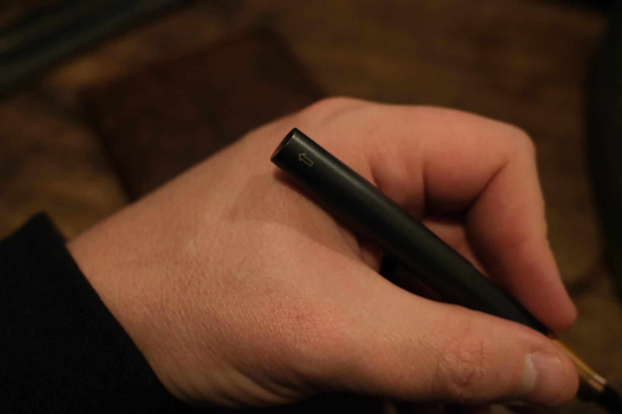 Now the party trick. Zirconium rings like a bell when you tap it. This stonewash satin finish is a deep charcoal grey-black and feels soft and smooth in your hand, especially when warmed in your pocket. It is tough and rugged, perfect for a pocket pen.