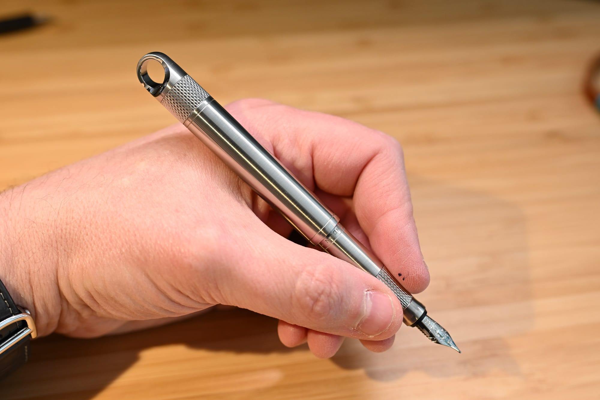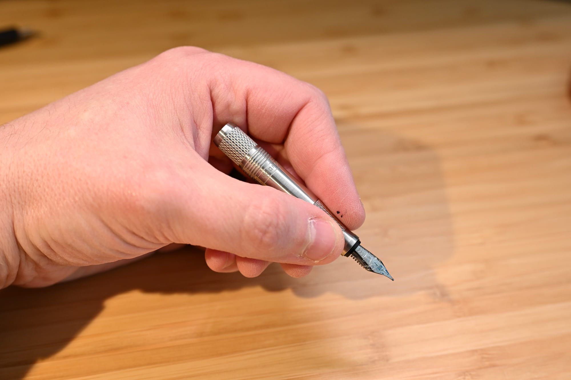 What’s more, the section has a very pronounced waist, down to an extremely slim 8mm, which drags your grip down low on the pen. And then the knurling on the section is so polished that it provides no meaningful grip.