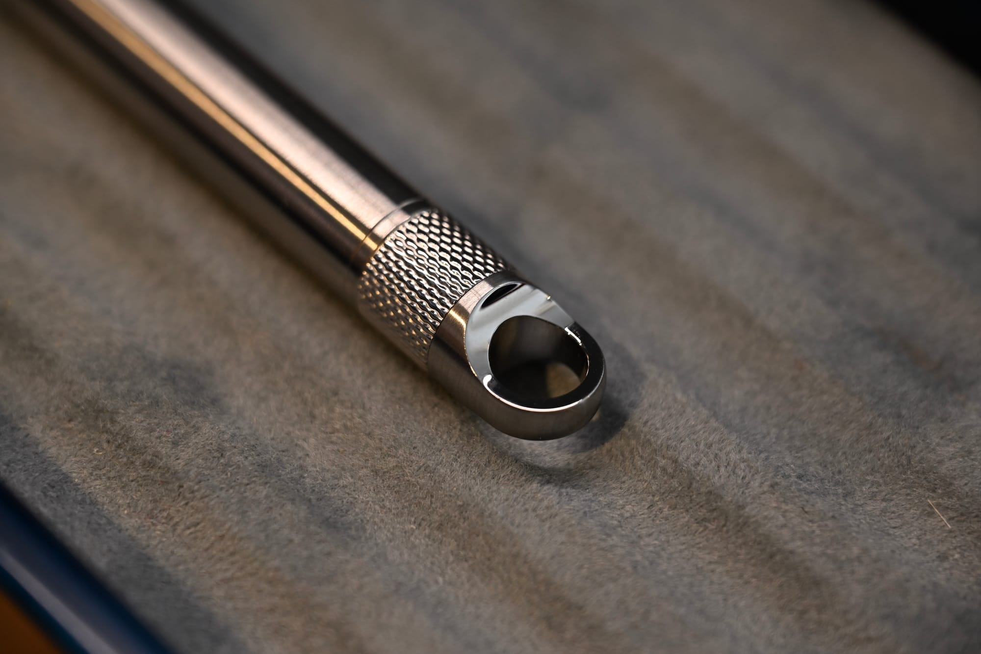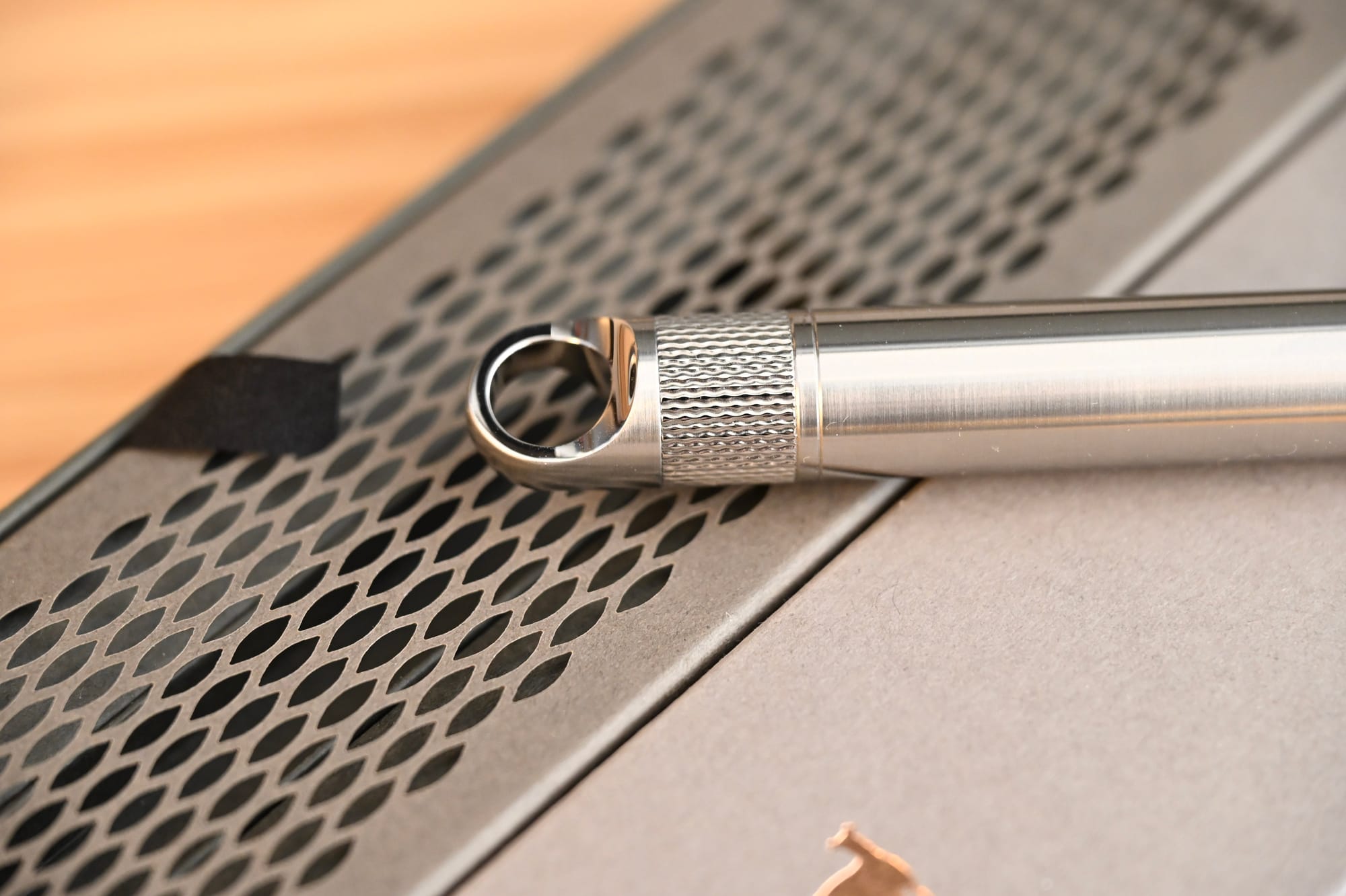 The cap features a large ring for a lanyard, impressively milled and with contrasting mirror-polish and brushing.