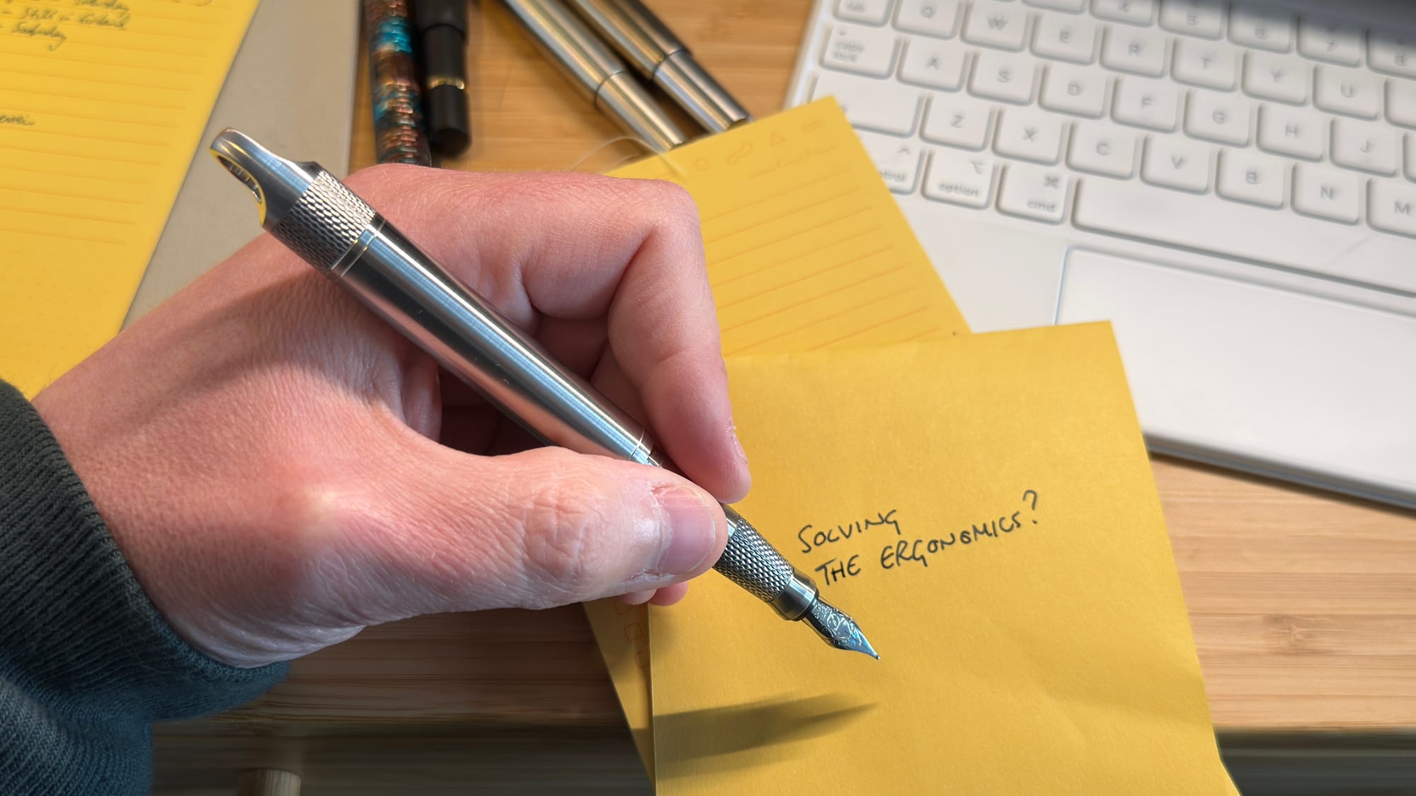 The cap posts securely and turns this into a full-size writer. Unfortunately, at least for me, the ergonomics just don’t work that well.
